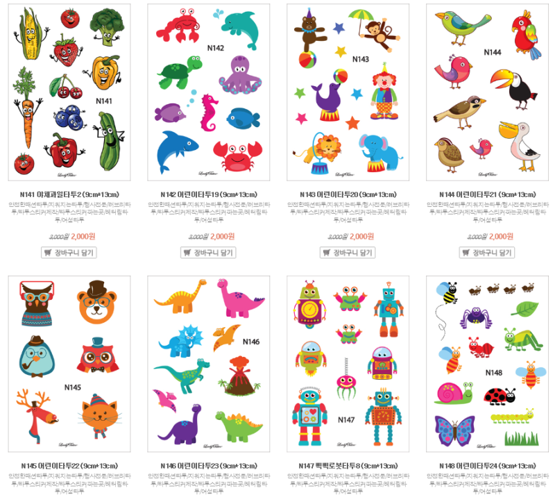 성인용 레터링 타투 스티커부터 학습용 및 어린이용 타투 스티커까지 다양한 타투 스티커를 판매하고 있습니다.