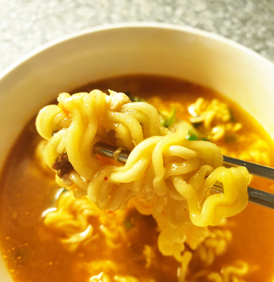 라면의 칼로리는 면과 육수에서 나오지만 라면은 에너지를 공급하는 고탄수화물 식품인 밀가루로 만든다.