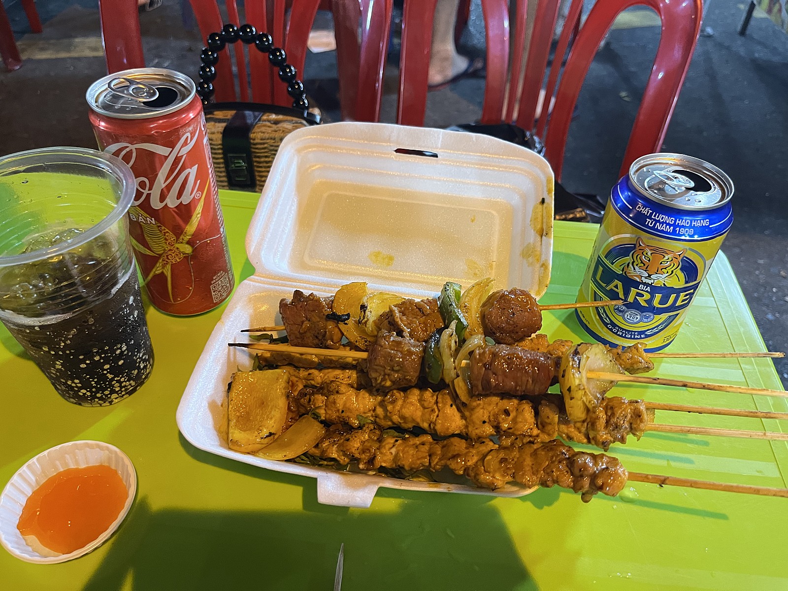 야외 바베큐 꼬치 + 맥주는 얼마나 배가 고팠습니까?