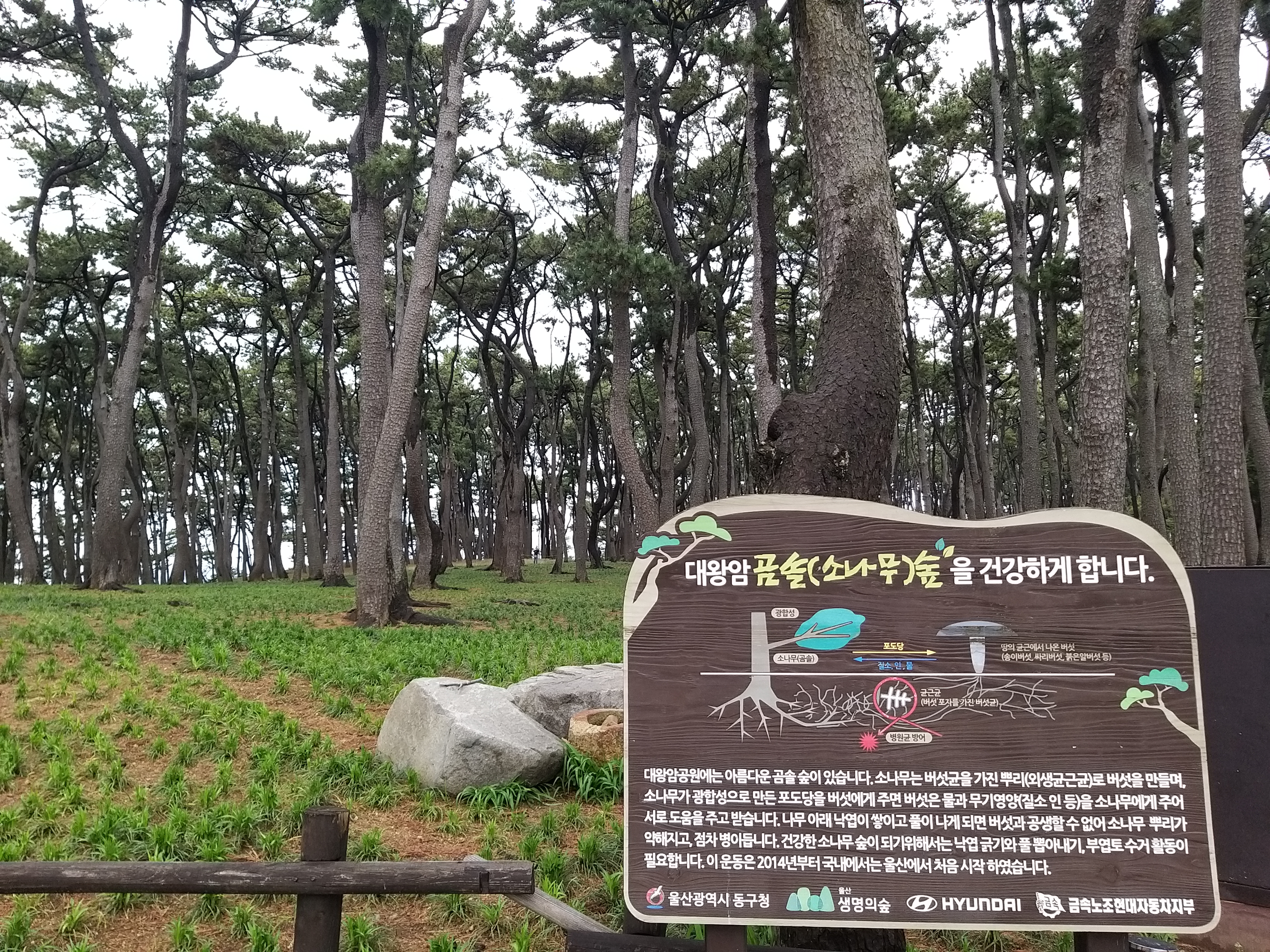 대왕암공원에는 아름다운 흑송숲이 조성되어 있으며, 송이버섯의 뿌리로 버섯을 만든다. 소나무가 광합성을 통해 만든 포도당을 버섯에게 줄 때 버섯은 물과 무기영양소를 소나무에게 주어 서로 돕는다. 나무 아래에 낙엽이 쌓이고 풀이 자라면 버섯과 공존할 수 없어 소나무 뿌리가 약해지고 점차 병에 걸린다. 건강한 소나무 숲을 가꾸기 위해서는 낙엽을 긁어내고, 풀을 뽑고, 부엽토를 모아야 합니다.