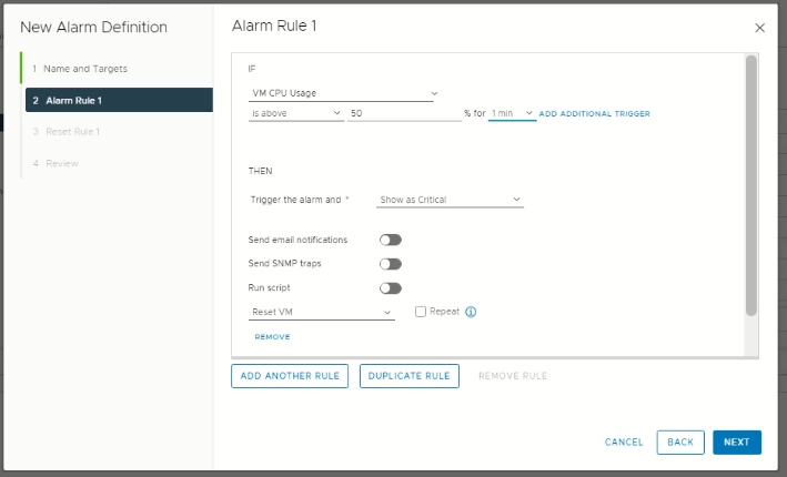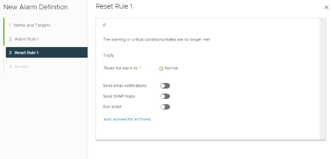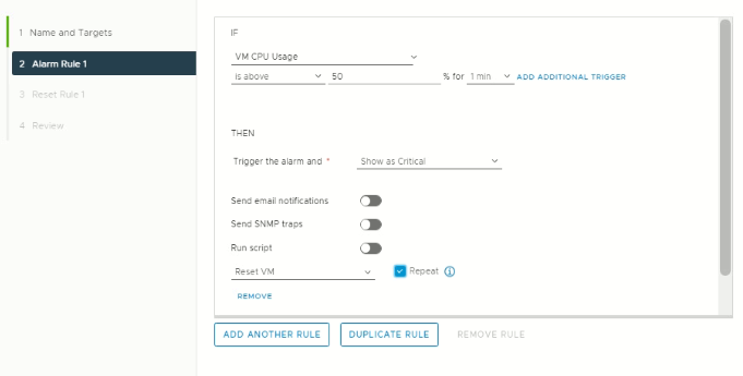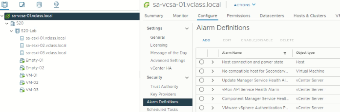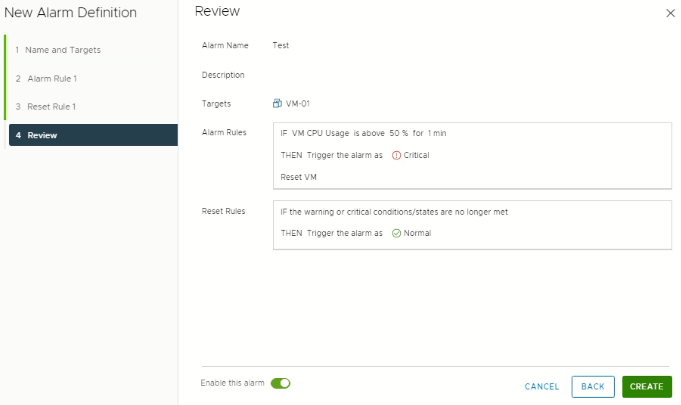 – 대상 유형이 있는 특정 계층 또는 가상 머신에 대한 알람 생성 가능