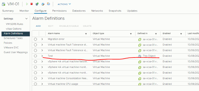 Defined in 차이 확인 가능 (테스트 알람은 현재 가상머신에서만 실행되도록 설정)